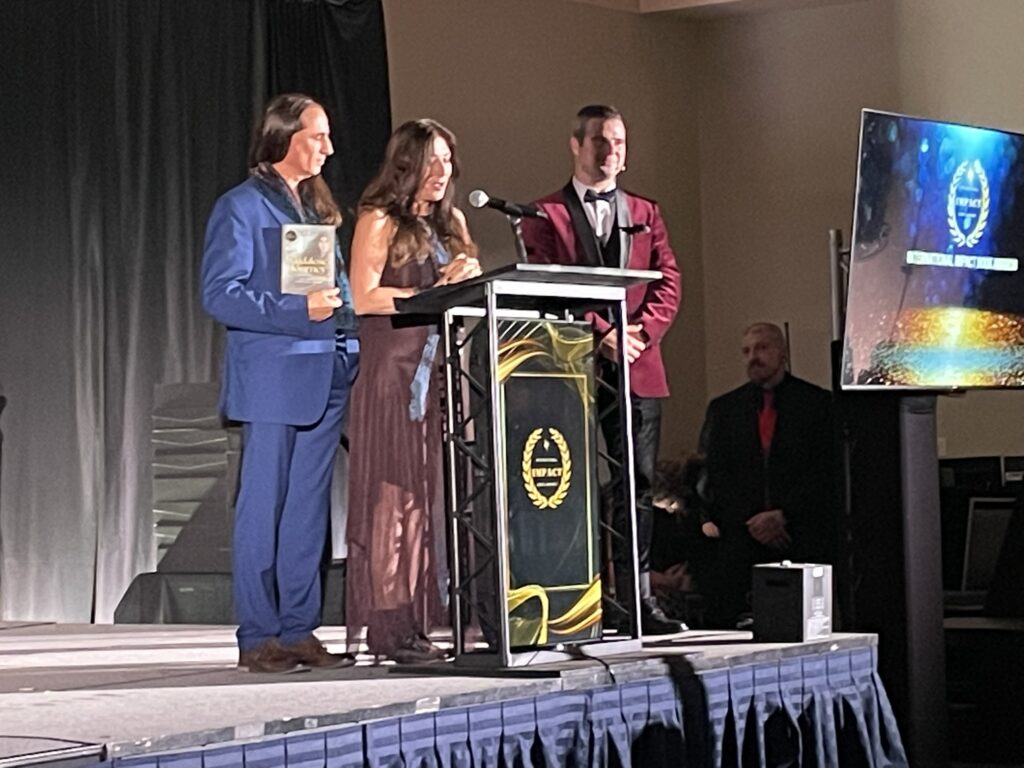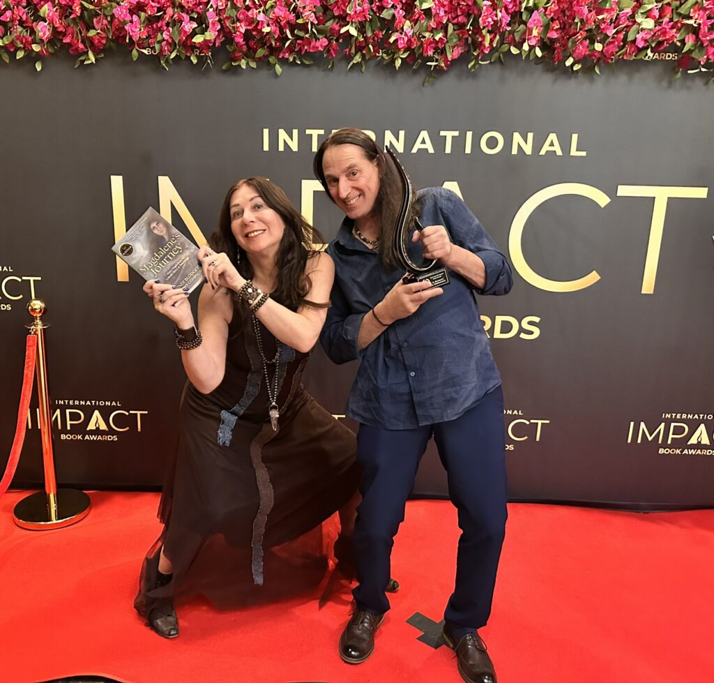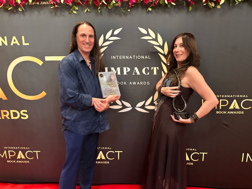 Phoenix AZ (November 1, 2025)—Magdalene’s Journey authors Renee Blodgett and Anthony Compagnone, received a trophy from the International Impact Book Award team at an Awards Gala in Phoenix on November 1. The book won in three categories: Spiritual Inspiration, Visionary Fiction and Religious Fiction.